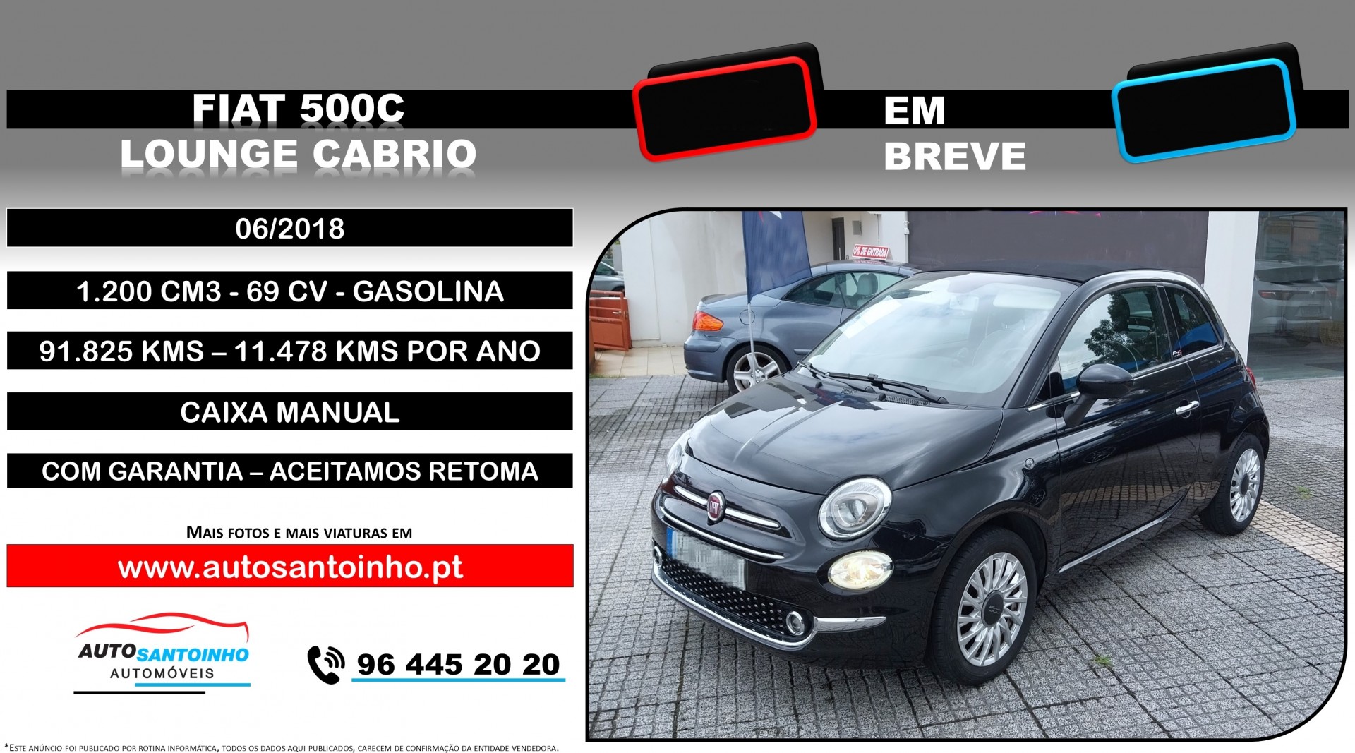 A informação disponibilizada, efetuada por rotina informática, não dispensa sua confirmação com a equipa comercial, nem poderá ser considerada vinculativa...Mais Informações: 96 445 20 20, obrigado.